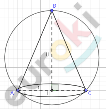\[S_{\text{ABC}} = \frac{1}{2} \bullet AB \bullet CH = \frac{1}{2} \bullet 2r \bullet H =\]