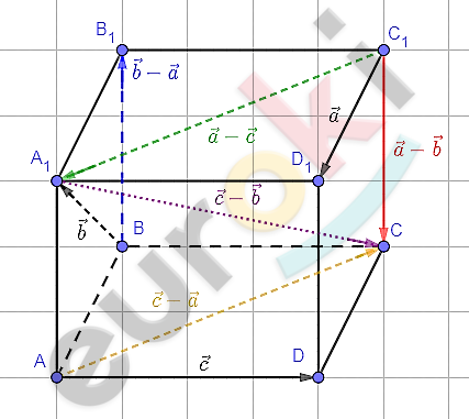 \[\overrightarrow{b} - \overrightarrow{a} = \overrightarrow{BA_{1}} + \overrightarrow{D_{1}C_{1}} =\]