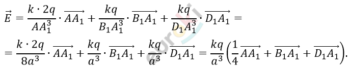 \[= \frac{\text{kq}}{a^{3}}\left( \frac{\overrightarrow{A_{1}C_{1}}}{\sqrt{2}} + \frac{\overrightarrow{A_{1}D} + \overrightarrow{A_{1}B}}{5\sqrt{5}} \right).\]