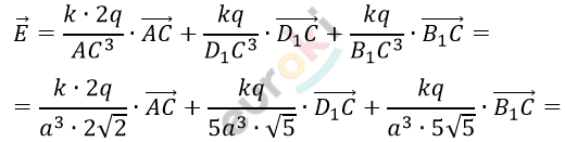 \[= \frac{\text{kq}}{a^{3}}\left( \frac{\overrightarrow{\text{AC}}}{\sqrt{2}} + \frac{\overrightarrow{B_{1}C} + \overrightarrow{D_{1}C}}{5\sqrt{5}} \right) =\]