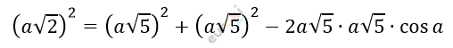 \[2a^{2} = 2 \bullet \frac{9a^{2}}{2} - 2 \bullet \frac{9a^{2}}{2} \bullet \cos a\ \]