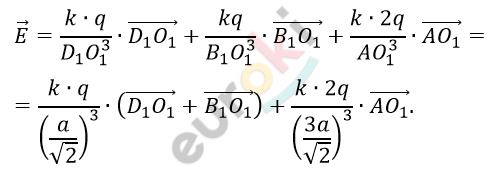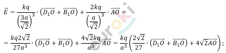 \[\overrightarrow{E} = \frac{k2q}{27a^{3}} \bullet 2\sqrt{2} \bullet \overrightarrow{AO_{1}};\]