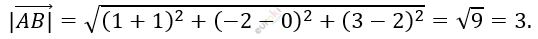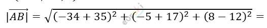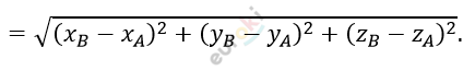 \[|\overrightarrow{AB|} = \sqrt{x_{\text{AB}}^{2} + y_{\text{AB}}^{2} + z_{\text{AB}}^{2}} =\]