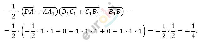 \[\textbf{а)}\ \overrightarrow{\text{BA}} \cdot \overrightarrow{D_{1}C_{1}} = \cos{180{^\circ}} \cdot 1 \cdot 1 =\]