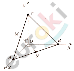 \[3)\ \overrightarrow{\text{OM}}\left\{ \frac{1}{2};0;\frac{1}{2} \right\};\ \ \overrightarrow{\text{ON}}\left\{ \frac{1}{2};\frac{1}{2};0 \right\};\]