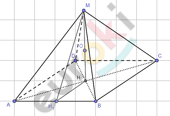 \[V = \frac{1}{3}S_{\text{ABCD}} \bullet MH =\]
