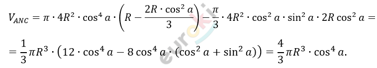 \[\frac{4}{3}\pi R^{3} \bullet \cos^{4}a = \frac{1}{2} \bullet \frac{4}{3}\pi R^{3}\]