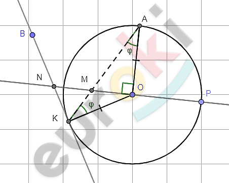 \[\angle AMO = 90{^\circ} - \varphi.\]