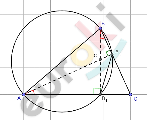 \[\angle AB_{1}O = \angle OA_{1}B = 90{^\circ};\text{\ \ }\]