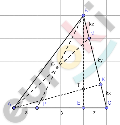 \[1)\ Пусть\ AP = x,\ PE = y,\ EC = z:\ \]