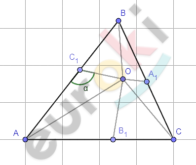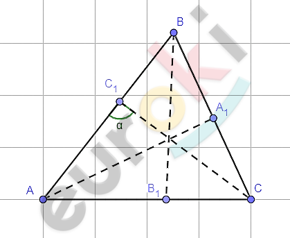 \[\frac{AC_{1}}{BC_{1}} = \frac{\sin{\angle AOC_{1}}}{\sin{\angle C_{1}\text{OB}}} \bullet \frac{\text{AO}}{\text{BO}}.\]