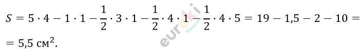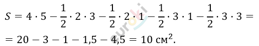 \[S = \frac{1}{2} \cdot 4 \cdot 5 = 10\ см^{2}\text{.\ }\]
