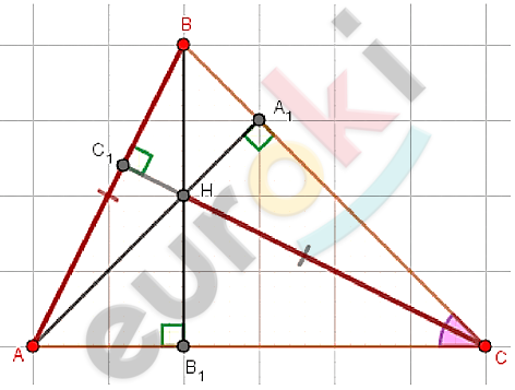 \[1)\ Проведем\ BH\bot AC\ на\ \]