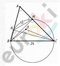 \[2)\ ⊿AMC - вписан\ в\ \]