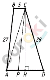 \[7)\ S_{\text{ABCD}} = \frac{AD + BC}{2} \cdot BH =\]