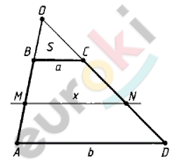 \[\frac{x^{2}}{a^{2}} \cdot S - S = \frac{2}{3}\left( \frac{b^{2}}{a^{2}} \cdot S - \frac{x^{2}}{a^{2}} \cdot S \right)\]