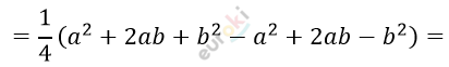 \[= \left( \frac{a + b}{2} \right)^{2} - \left( \frac{a - b}{2} \right)^{2} =\]