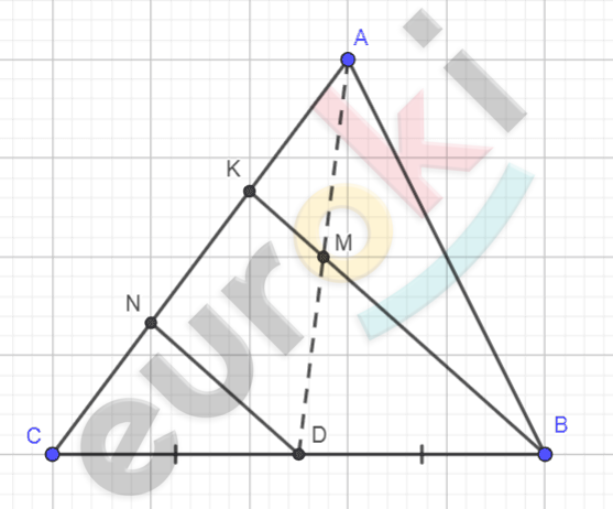 \[AK = KN\ (по\ теореме\ Фалеса).\]