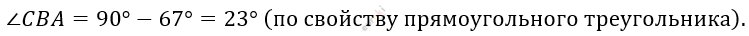 \[\angle CAB = 67{^\circ};\ \angle CBA = 23{^\circ};\]