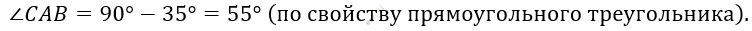 \[\textbf{б)}\ \angle B = 90{^\circ} - \alpha = 90{^\circ} - 35{^\circ} =\]