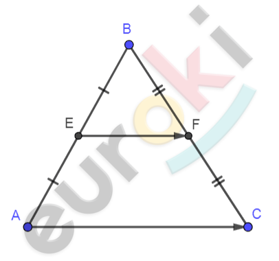 \[\left| \overrightarrow{\text{EF}} \right| = \frac{1}{2} \bullet \left| \overrightarrow{\text{AC}} \right| \Longrightarrow \ EF = \frac{1}{2}AC;\]