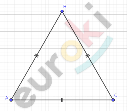 \[3)\ \angle A = \angle B = \angle C = 60{^\circ}.\]