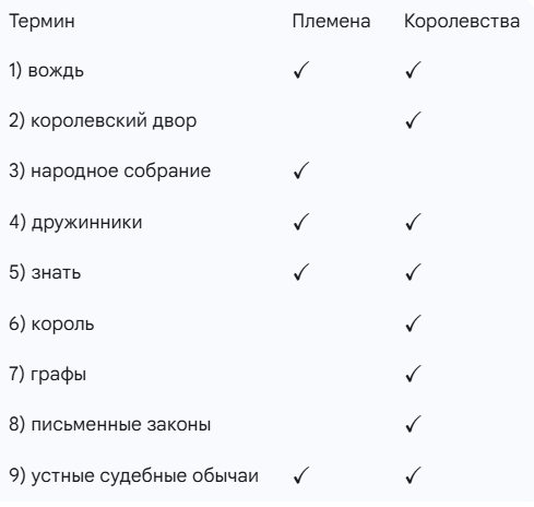 Запишите в таблицу выбранные цифры. Учтите, что некоторые термины применимы и к племенам, и к королевствам.