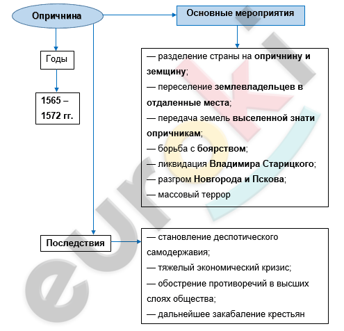 Добавить текст Вернуть оригинал4. Заполните пропуски в схеме «Опричнина Ивана Грозного».
