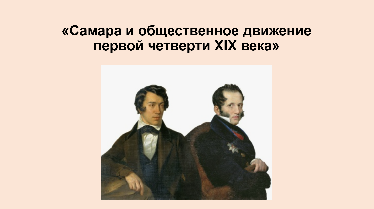 Добрый день! Тема моего сообщения — «Связь Самарского края с общественным движением первой четверти XIX века». Поскольку Самара в те годы была уездным городом Симбирской губернии, находящимся далеко от столиц, её связь с декабристами была в основном косвенной — через тыловое обеспечение, места ссылки и социальные процессы.