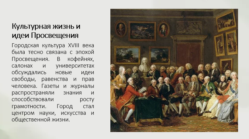 Добавить текст Вернуть оригиналИдеями Просвещения: Просветители считали, что город должен быть организован рационально, с широкими и прямыми улицами.
