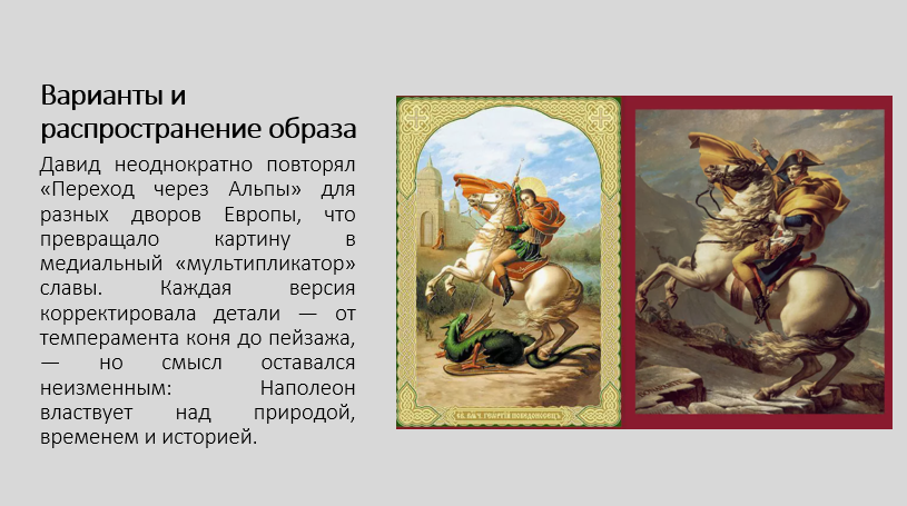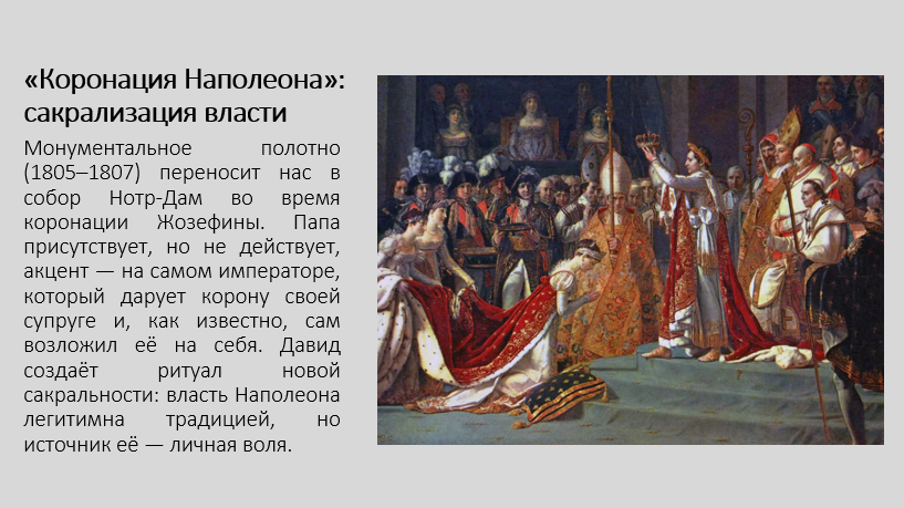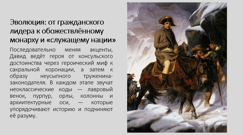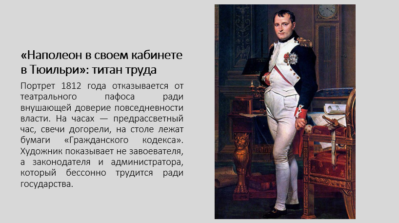 6. Используя дополнительные источники информации, подготовьте презентацию о Ж.-Л. Давиде «Первый художник императора». В ней рассмотрите основные картины, посвящённые Наполеону. Проследите, как менялся его образ, какие представления об императоре стремился донести до нас художник.