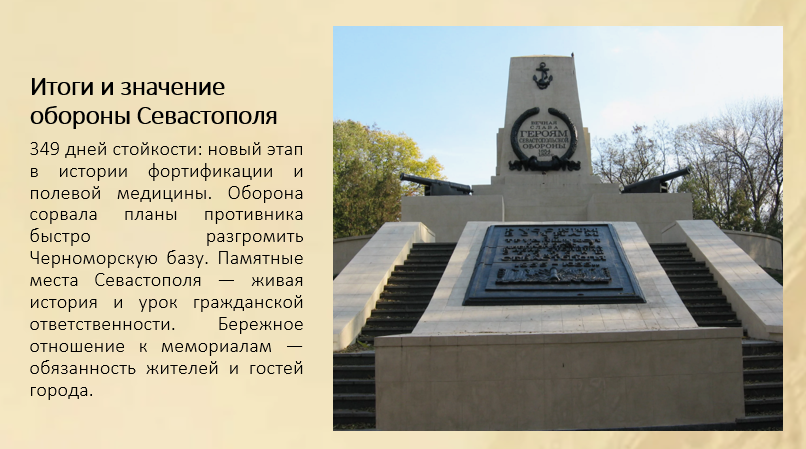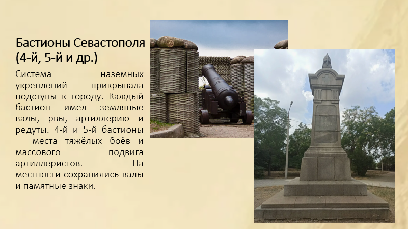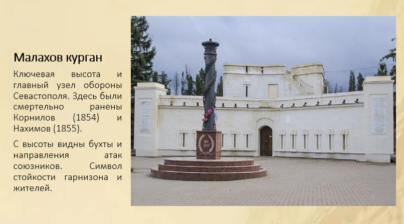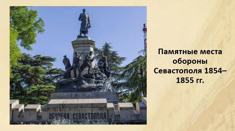 2. Виртуальная экскурсия по памятным местам Севастопольской обороны. Используя дополнительные источники, подготовьте презентацию памятных мест обороны Севастополя в 1854-1855 гг. При помощи презентации проведите воображаемую экскурсию по этим местам для одноклассников.