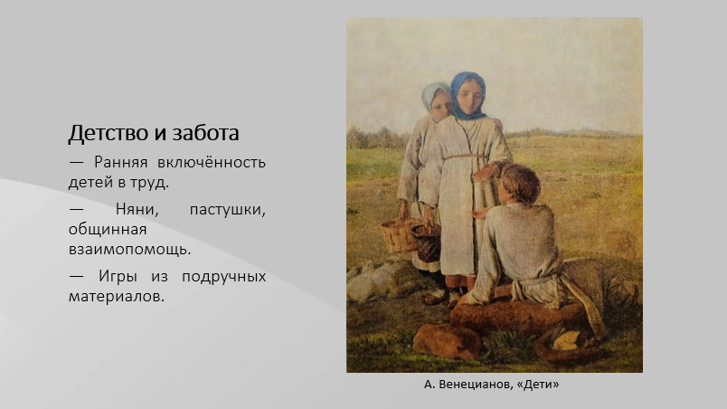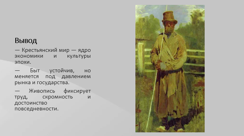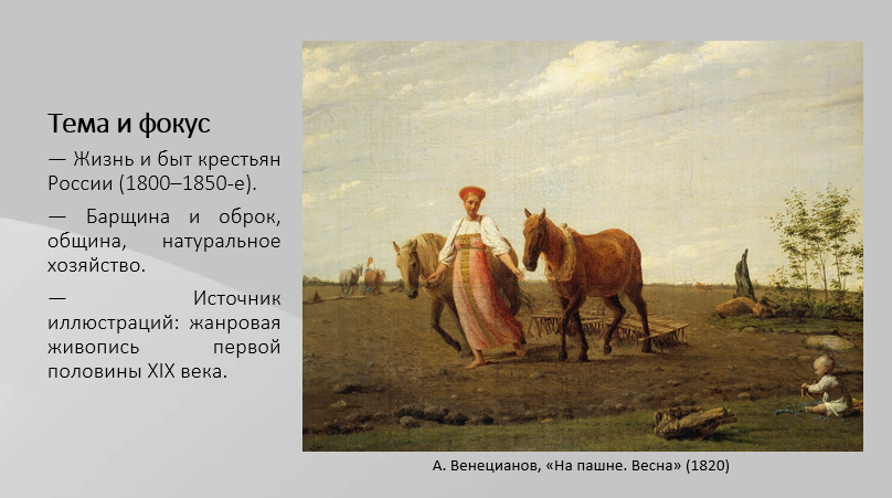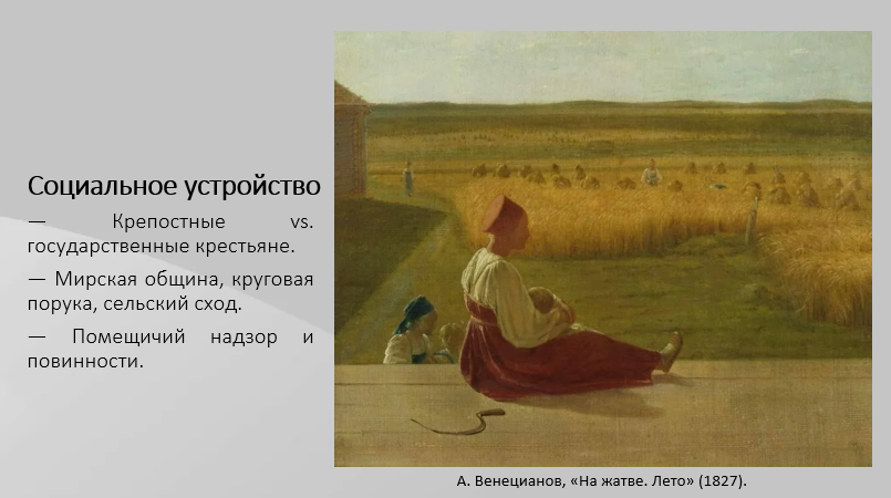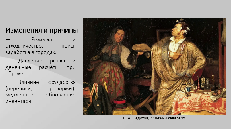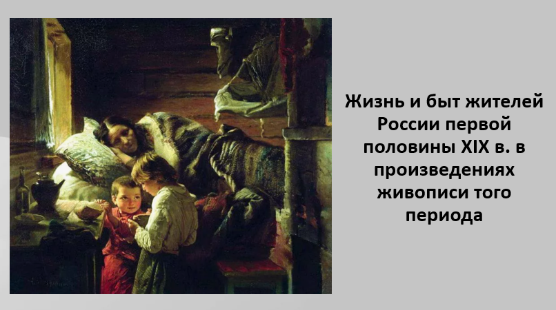 1. Жизнь и быт жителей России первой половины XIX в. в произведениях живописи того периода. Вспомните материалы об особенностях быта жителей России в первой половине XIX в., об изменениях, происходивших в этой сфере, о причинах этих изменений. С помощью дополнительной литературы и Интернета подберите описания повседневной жизни и репродукции картин художников, демонстрирующие жизнь и быт одного из российских сословий (на выбор). На основе собранных материалов подготовьте презентацию.