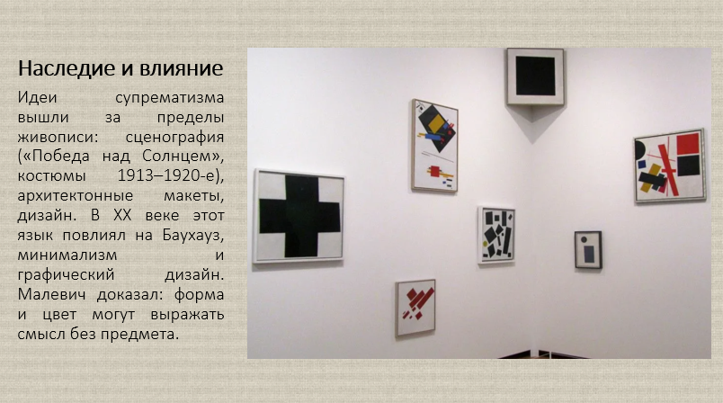 Добавить текст Вернуть оригиналВклад в мировую культуру: Достижения русского авангарда (Кандинский, Малевич), «Русские сезоны» в Париже, а также мировое признание русских композиторов (Чайковский) и писателей (Толстой) оказали огромное влияние на развитие мирового искусства XX века.