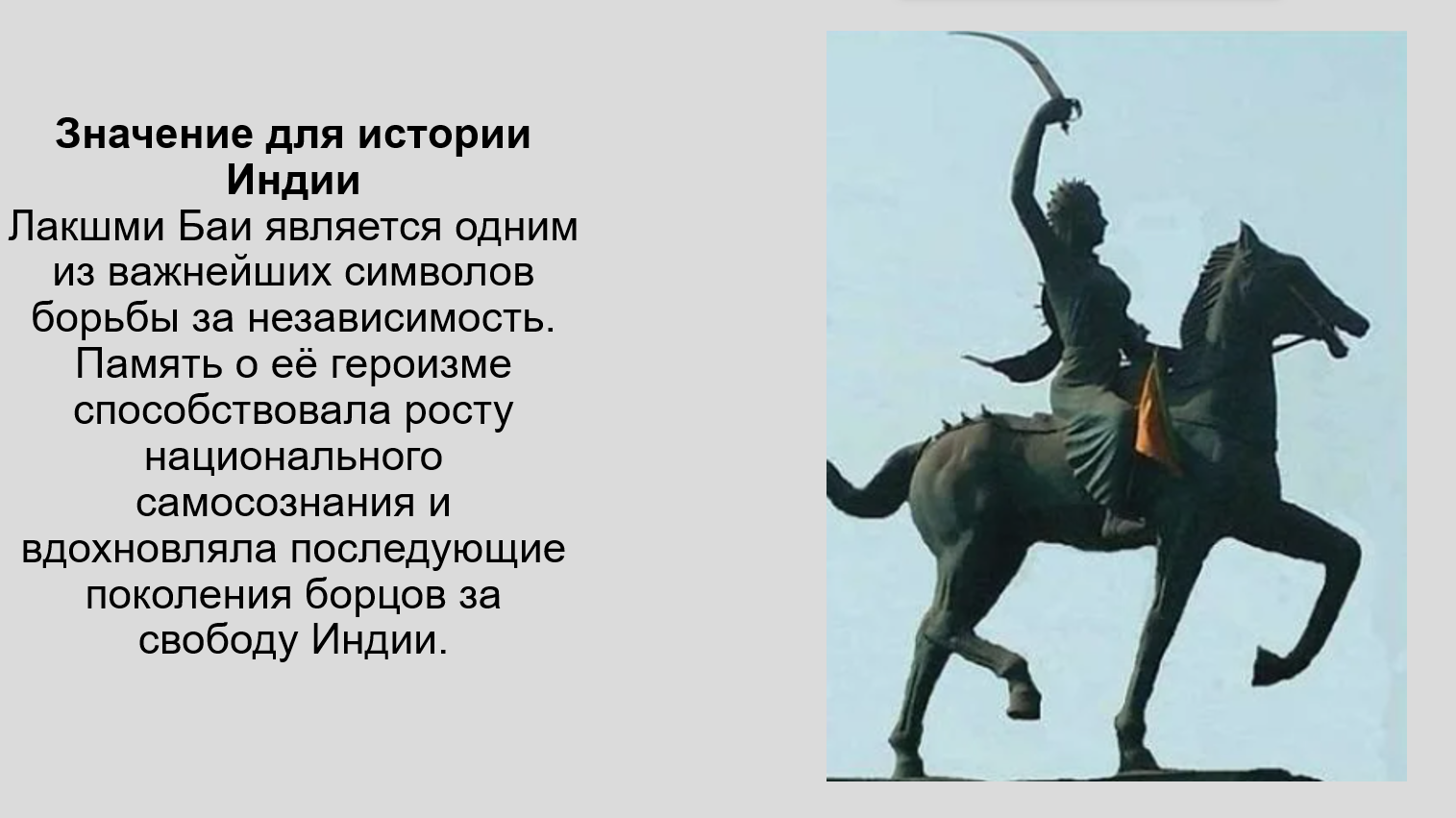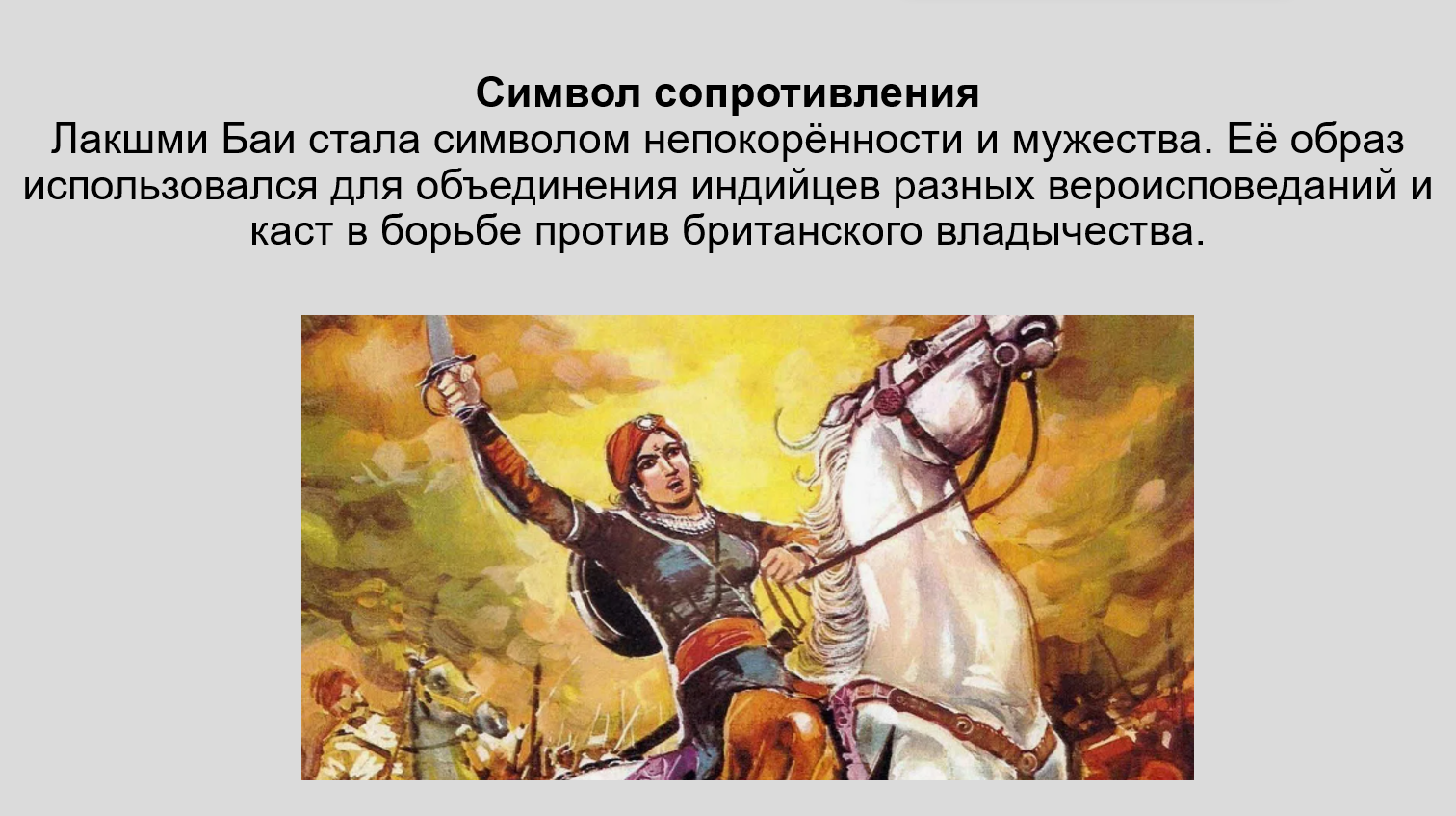 8. Подготовьте презентацию на тему «Лакшми Баи — индийская Жанна д'Арк». Почему она стала народной героиней и одним из символов борьбы за независимость?
