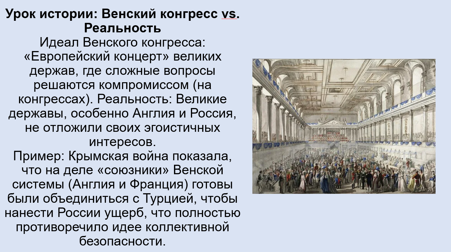 Добавить текст Вернуть оригиналПринципы Венской системы (поддержание баланса сил, легитимизм).
