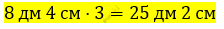 \[84\ см \cdot 3 = 252\ см = 25\ дм\ 2\ см\]