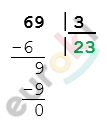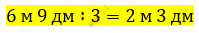 \[69\ дм\ :3 = 23\ дм = 2\ м\ 3\ дм\]
