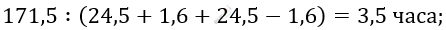 \[4)\ 171,5\ :49 = 3,5\ (ч) - через\ \]