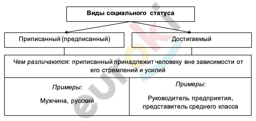 1. Социальный статус – положение человека в обществе или группе, наделяющее его определенными правами и обязанностями.