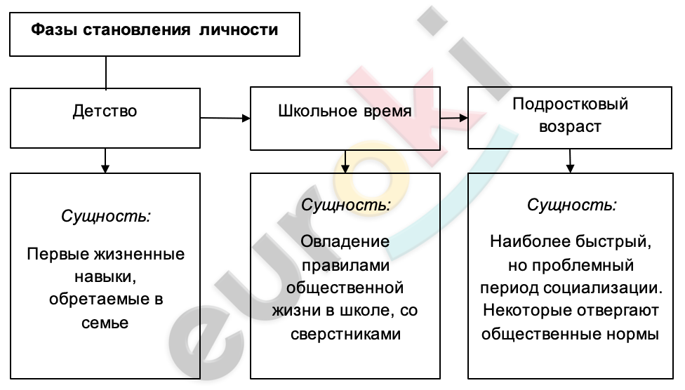 1. Социализация – процесс усвоения человеком социальных норм, культурных ценностей.