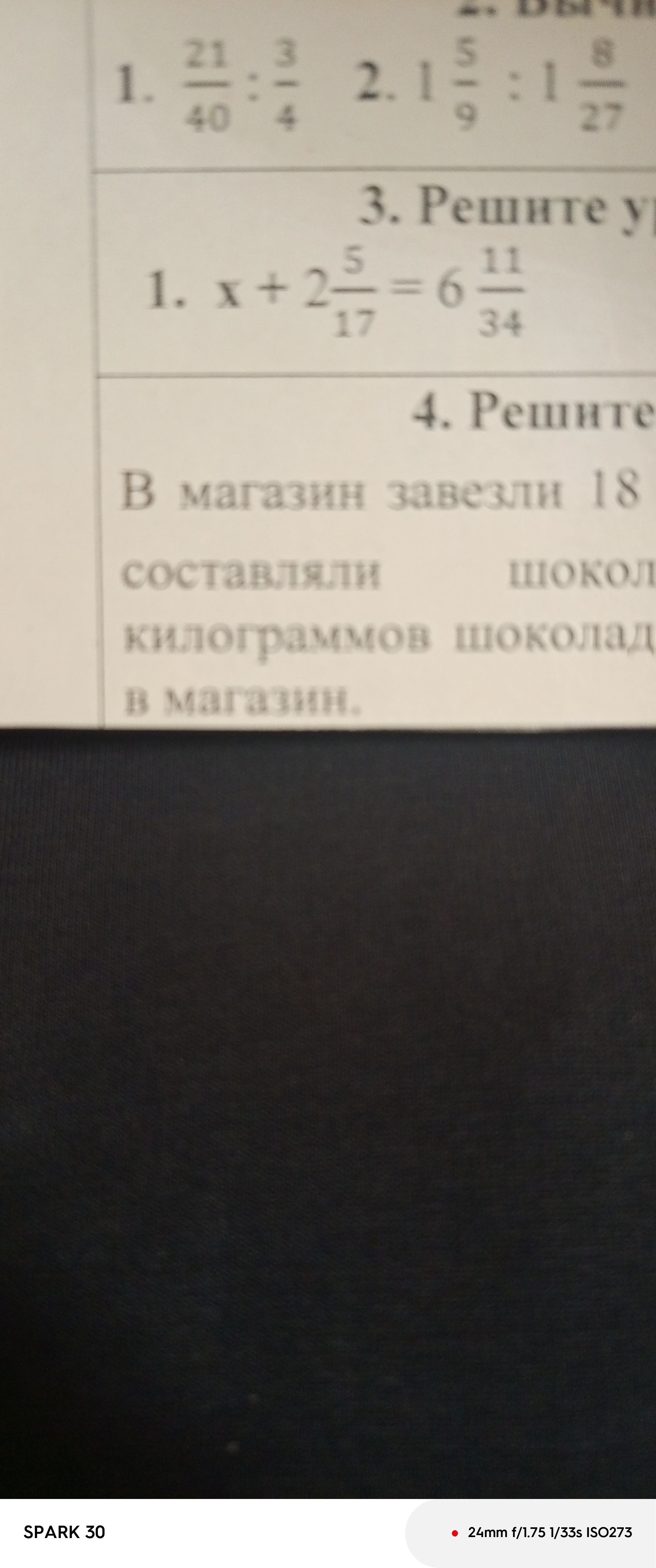 Для решения этого примера необходимо разделить дробь \(\frac{21}{40}\) на дробь \(\frac{3}{4}\).