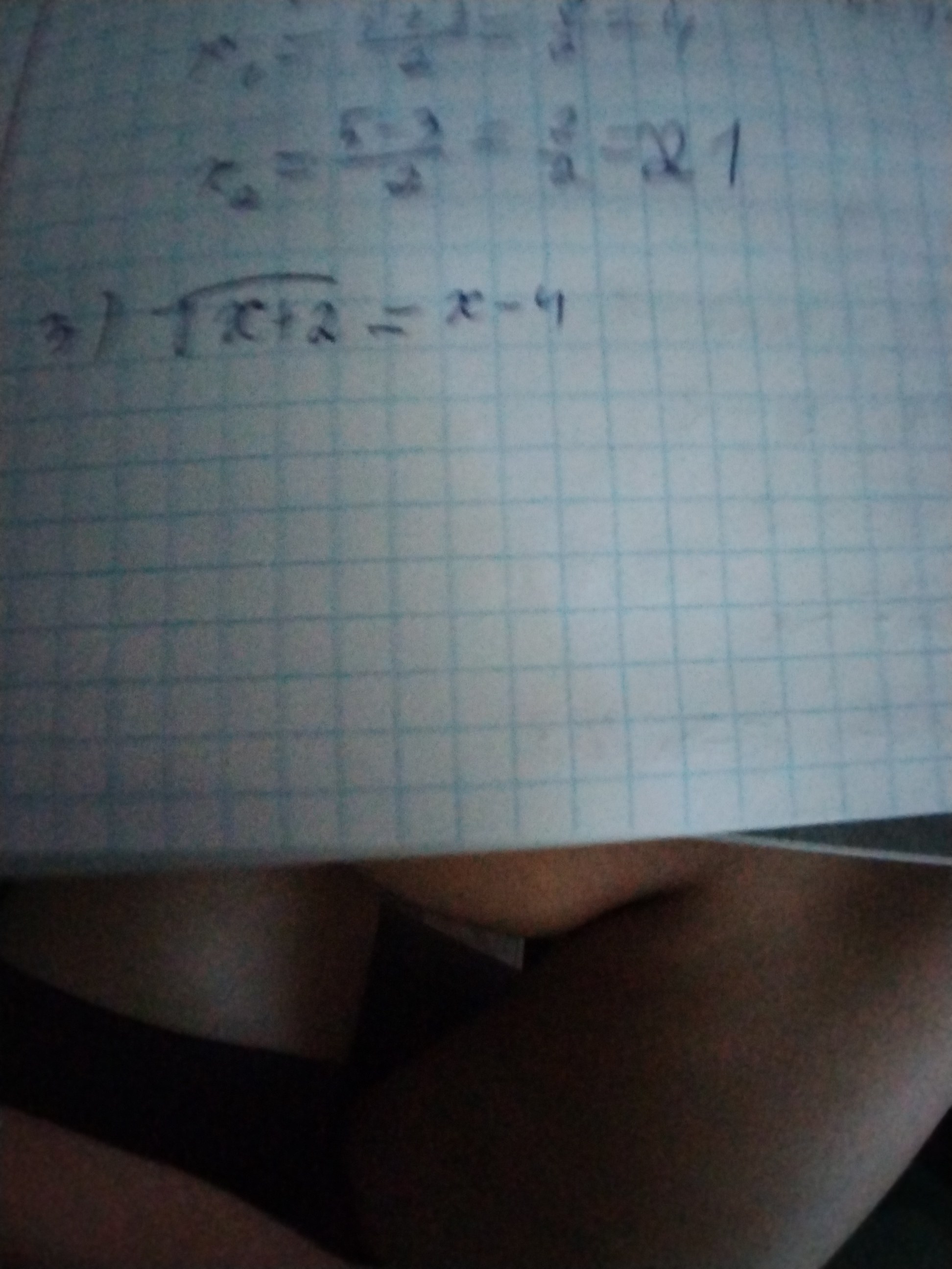 $$ x_1 = \frac{-b + √D}{2a} = \frac{9 + √25}{2 * 1} = \frac{9 + 5}{2} = \frac{14}{2} = 7 $$ $$ x_2 = \frac{-b - √D}{2a} = \frac{9 - √25}{2 * 1} = \frac{9 - 5}{2} = \frac{4}{2} = 2 $$Проверим каждый корень, подставив его в исходное уравнение √(x+2) = x-4:
