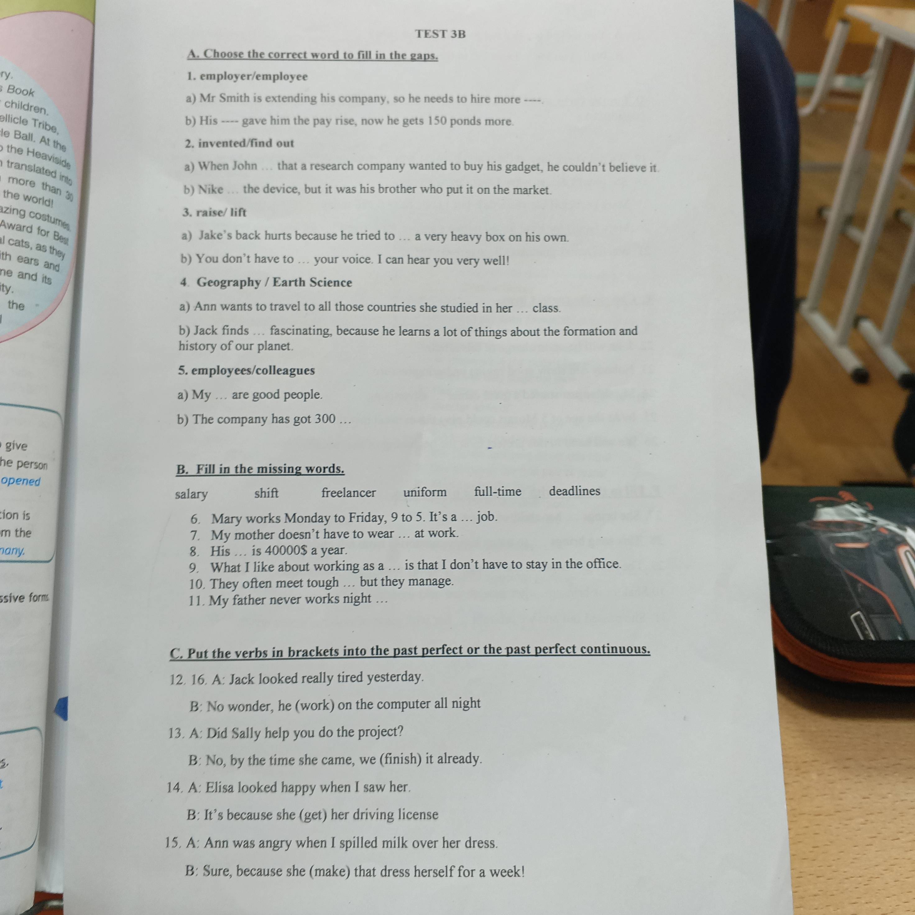 C. Put the verbs in brackets into the past perfect or the past perfect continuous. 12. 16. A: Jack looked really tired yesterday. B: No wonder, he (work) on the computer all night