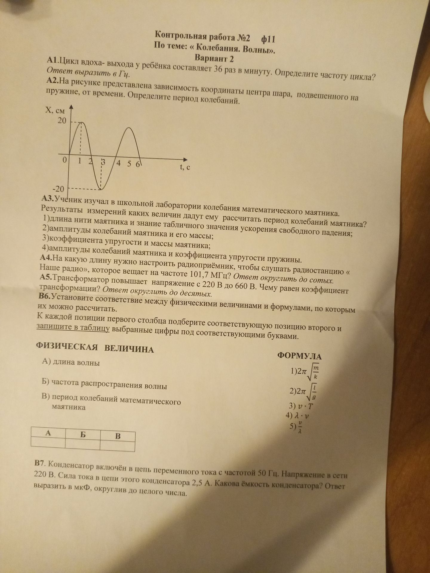 А2. На рисунке представлена зависимость координаты центра шара, подвешенного на