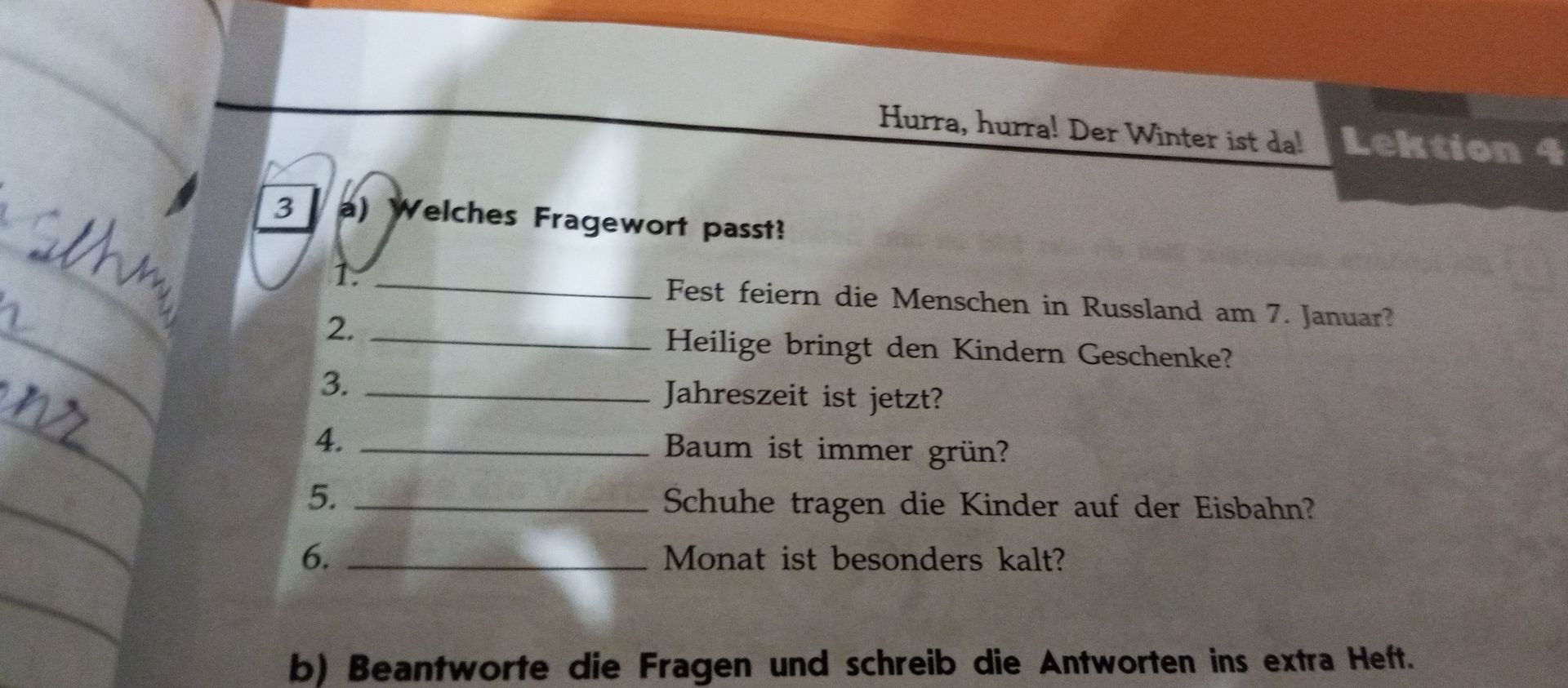 Контрольные задания > 3 a) Welches Fragewort passt?