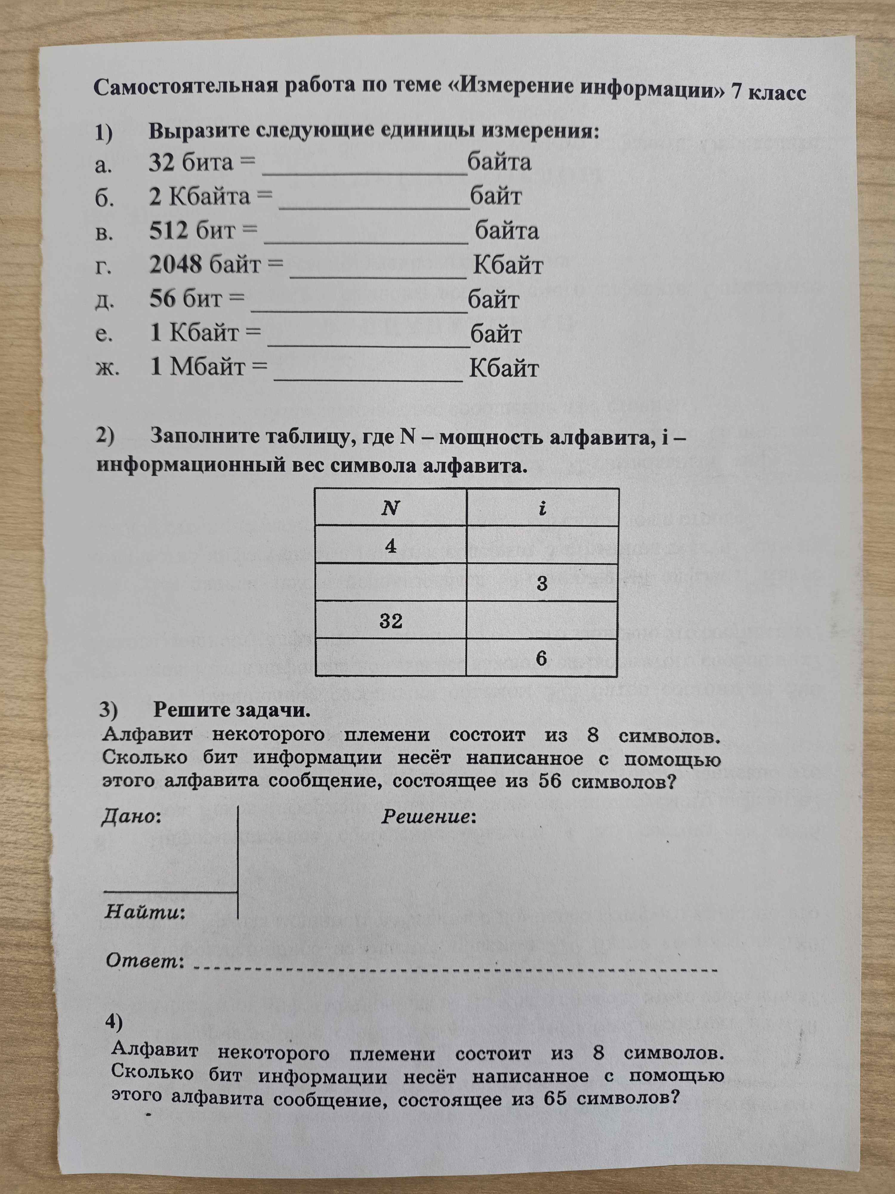 Сообщение состоит из 65 символов. Чтобы найти общее количество информации в сообщении, умножим количество символов на информационный вес одного символа: