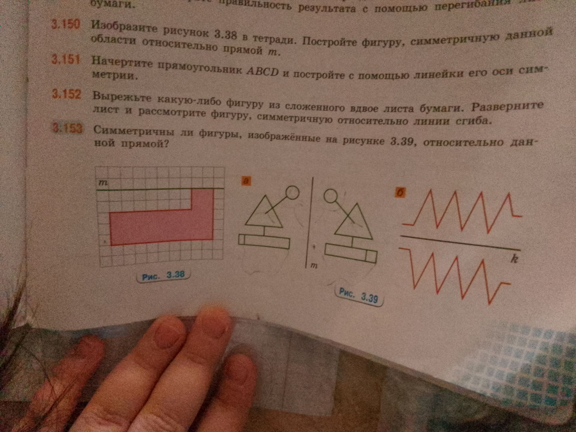 3.152 Вырежьте какую-либо фигуру из сложенного вдвое листа бумаги. Разверните лист и рассмотрите фигуру, симметричную относительно линии сгиба.