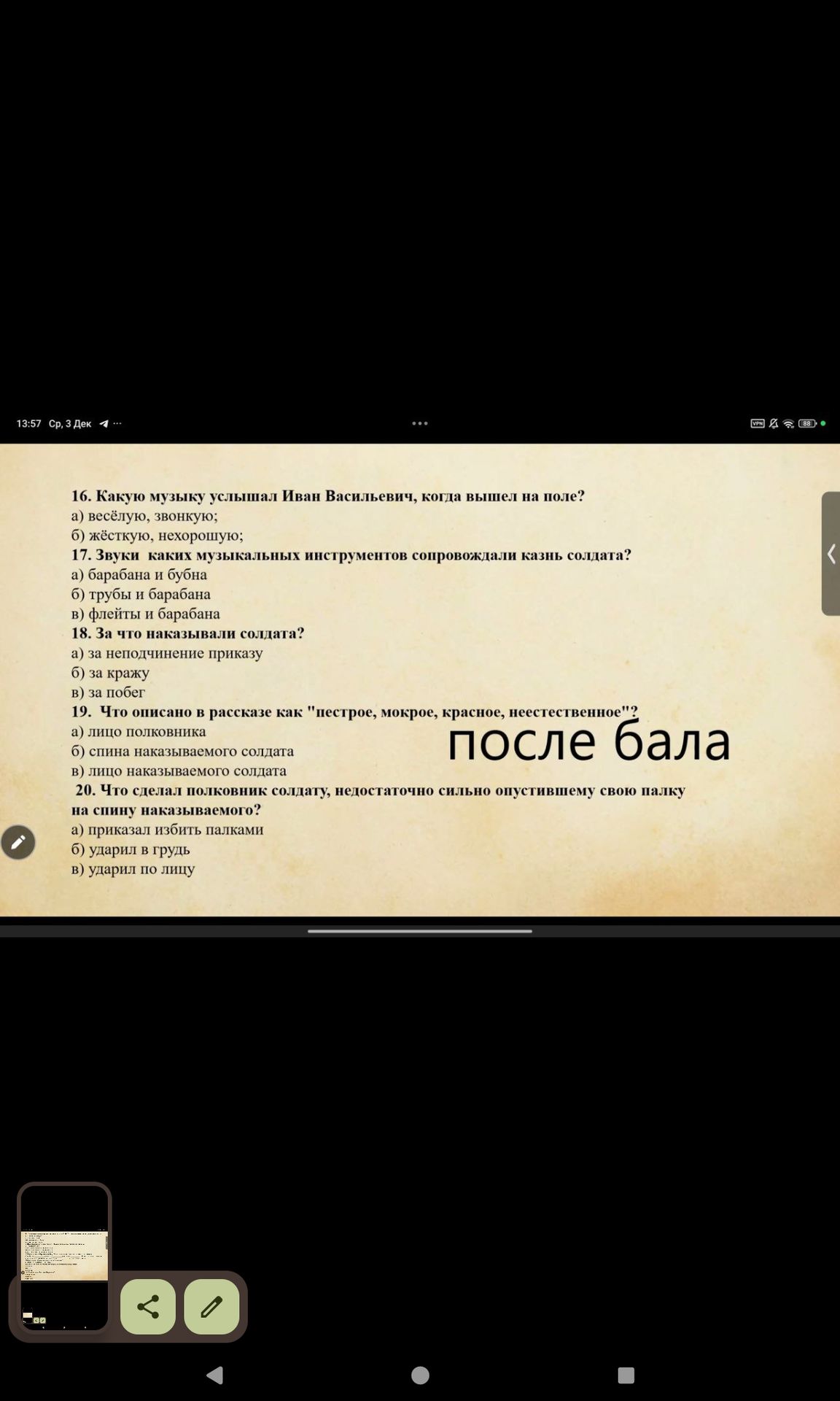 Чтобы ответить на вопрос, необходимо вспомнить содержание рассказа Л.Н. Толстого «После бала».