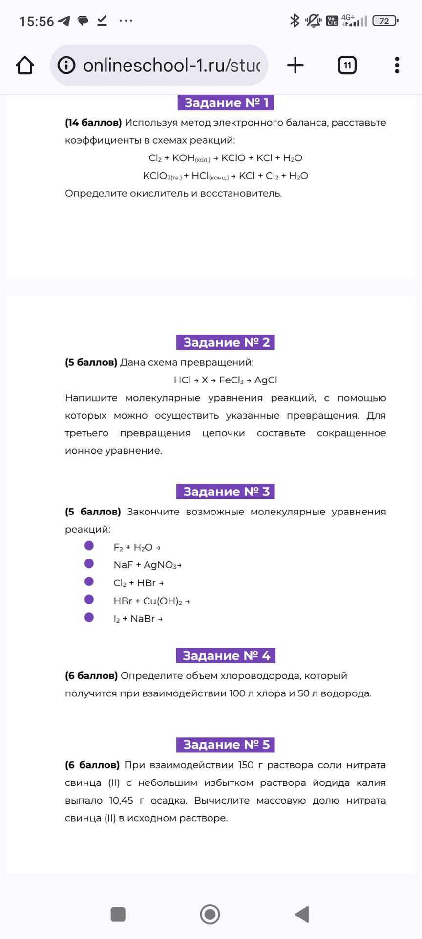 Для решения задачи используем метод электронного баланса.